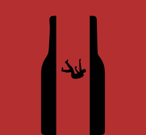Drunk person drowning in alcoholism, alcohol drinking addiction problem illustration